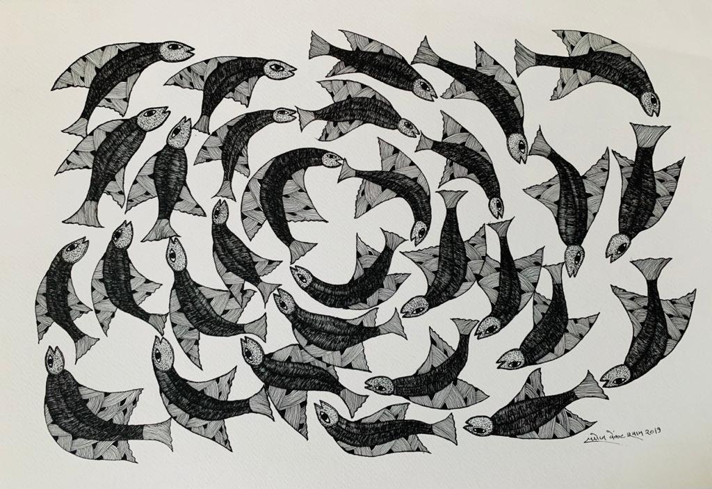 Bimal realized that his past ailment had started bothering him again. A collector had come knocking at his door after several months, her face half-covered in a mask. The pandemic had begun to recede slowly. Bimal greeted her and offered a few drops of hand sanitizer. That was then followed by other rituals to make her feel welcome. Previously, guests would be first greeted with a glass of water, followed by tea and some sweets, but the pandemic changed everything. Isabel, from Spain, in her sixties, sat stiffly, sifting through Bimal’s paintings.